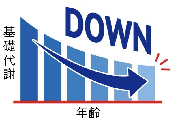 そして基礎代謝は年齢によって変化します。成長とともにどんどん増えていき10代後半をピークとして、それ以降は減少していきます。ですから若い時と同じ食事を続けていると中年になって、みんなぽっくりお腹になっていくわけです。