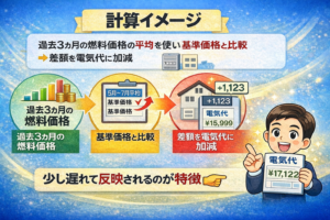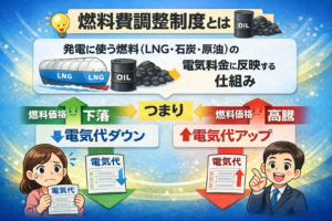 👉 発電に使う燃料(LNG・石炭・原油)の価格変動を、電気料金に反映する仕組み